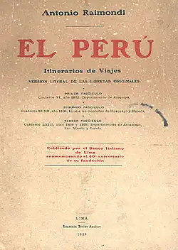 Antonio Raimondi, né le à Milan et mort le à San Pedro de Lloc (anciennement San Pedro de Pacasmayo), est un naturaliste et explorateur italo-péruvien. Il se consacra à l'étude du Pérou.