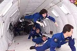 Astronautes en apesanteur lors d'un vol parabolique en avion.