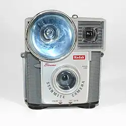 1900. Brownie fut le nom d'une longue série d'appareils photo populaires produits par Eastman Kodak. Le Brownie popularisa le concept de la photographie bon marché et de la prise de vue instantanée. Le premier Brownie apparait en février 1900[12] : c'était un modèle très simple avec un simple ménisque comme objectif, au format 6 x 6 cm. Il était vendu au prix de 10 dollars[2],[3],[4],[5],[9].