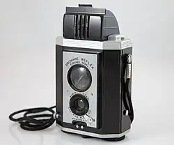 1940. Faux reflex (l'objectif de visée ne permet pas la mise au point) cet appareil au look flatteur sera vendu en grande quantité aux États-Unis et sera aussi produit en Angleterre à partir de 1946[3],[20].