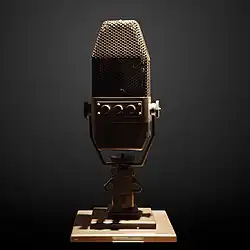 Charles de Gaulle au micro de la BBC à Londres. Cette photographie est postérieure au car le Général porte sur sa vareuse l'insigne à croix de Lorraine[1], adoptée comme emblème de la France libre en juillet de la même année[2]. Comme il n'existe aucun cliché de l'appel du 18 Juin, cette image est souvent utilisée comme illustration du célèbre discours radiodiffusé[1]. | |