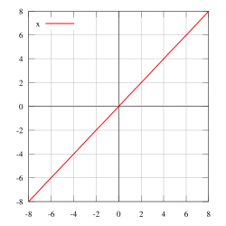 Le graphe de l'application identité de est appelé la diagonale du produit cartésien . Pour l'ensemble des réels, ce graphe est la première bissectrice du plan euclidien.