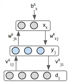 Il s'agit d'une machine Boltzmann où les connexions latérales au sein d'une couche sont interdites. On a donc à nouveau des neurones stochastiques, d'état pour le neurone de la couche visible et pour le neurone de la couche caché.