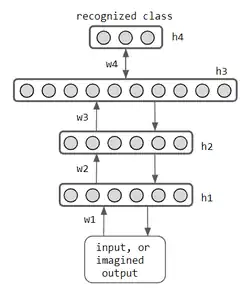 | Usage & notables | mémoires adressables par contenu, problème de voyageur de commerce | mémoires adressables par contenu | reconnaissance de formes. utilisé dans les chiffres et la parole : MNIST. | reconnaissance & imagination. pré-entrainement non supervisée et/ou réglage fin supervisé. | imagination, mimétisme | langue : écriture créative, traduction. vision : débruitage[18] | générer des données réalistes |