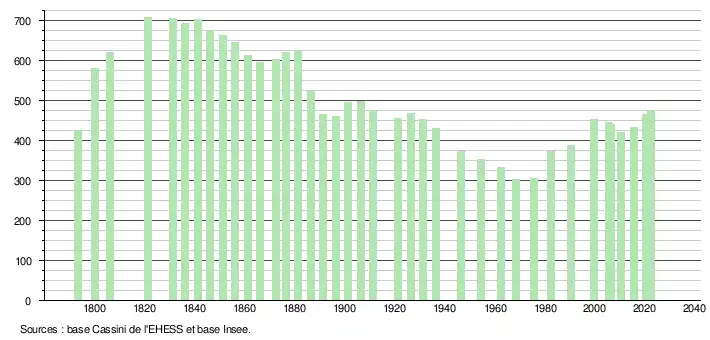 - ↑ Population municipale de référence en vigueur au 1er janvier 2025, millésimée 2022, définie dans les limites territoriales en vigueur au 1er janvier 2024, date de référence statistique : 1er janvier 2022.