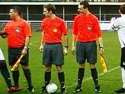 - Arbitre assistant (anciennement juge de touche) : au nombre de deux, ils sont présents le long de chacune des lignes de touche. Ils assistent l'arbitre central, notamment dans la détection du hors-jeu et des sorties de balle, mais aussi pour les fautes et incorrections commises hors du champ de vision de l'arbitre ou pour lesquelles ils ont un meilleur angle de vue.