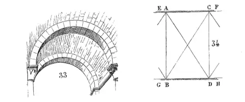 L'arc-doubleau est porté par les quatre piles fortes, elles-mêmes logées aux quatre angles de la travée[4].