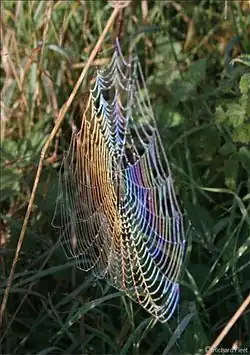 Arc-en-ciel de rosée sur une toile d'araignée