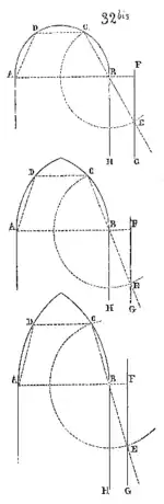 De même, des années plus tard, le mathématicien David Gregory fournit une manière de dimensionner une culée, montrant que si dans la caténaire les forces poussent vers l'intérieur, dans l'arc d'une caténaire inversée, elles le font vers l'extérieur. Le mathématicien français Philippe de La Hire (1640-1718) a une approche différente dans son Traité de mécanique, essayant de trouver quel est le poids approprié des voussoirs pour améliorer la stabilité de l'arcade[21], employant pour la première fois un polygone funiculaire dans la description d'un arc, avec l'hypothèse initiale de non-résistance entre les voussoirs. Plus tard, en l'an 1712, il publie son mémoire sur la Construction des voûtes dans les édifices qui influence les générations postérieures de constructeurs européens comme dans les tables constructives des arcs de ponts élaborés par Jean-Rodolphe Perronet[22]. Ces tables seront populaires dans la construction empirique de ponts européens jusqu'à la moitié du XIXe siècle.