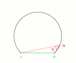 Théorème — Soient A et B deux points du plan et α un réel donné tel que 0 < α < π. L'ensemble des points M d'un des demi-plans ouverts délimités par la droite tels que est un arc de cercle ouvert (c'est-à-dire dont les extrémités A et B sont exclues).