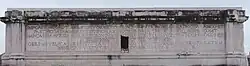Sur l'attique de chaque façade, est gravée une large inscription dédicatoire aux empereurs vainqueurs. Originellement, les lettres gravées en creux recevaient des lettres de bronze fixées à la pierre par des clous et aujourd'hui disparues[7].