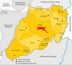 Il cède une autre partie de son territoire le 8 juillet 1989 pour la création du diocèse de Líbano-Honda qui rejoint la province ecclésiastique d'Ibagué[6].