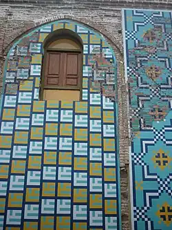 Décor de faïence du tombeau de Mir Bozorg Marashi(en) à Amol. Détail du pishtak. Deuxième moitié du xivesiècle