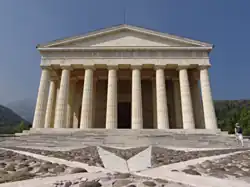Toutefois, le principal artisan de ce renouveau fut Gian Antonio Selva[7] avec le projet pour le Teatro La Fenice de Venise (1790-1792), remanié puis reconstruit après l'incendie dévastateur de 1996. Lui sont également attribués, bien que de manière incertaine, le Tempio Canoviano (it) à Possagno (1819-1833), fusion parfaite entre le modèle du Parthénon et celui du Panthéon.