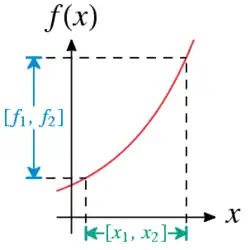 Plus généralement on peut dire que pour des fonctions monotones par morceaux il suffit de considérer les bornes de l'intervalle [x1 , x2] ainsi que les extremum (ou points critiques) de la fonction sur cet intervalle pour obtenir une évaluation de cette fonction en termes d'intervalles.