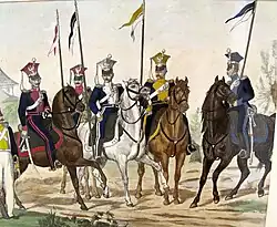 Les troupes royales polonaises prirent part à l'insurrection de Novembre (1830-1831) contre les Russes[4]. La révolte éclata lorsqu'un groupe de jeunes officiers essaya, sans succès, d'assassiner le grand-duc Constantin, gouverneur du royaume et commandant en chef de l'armée polonaise[5]. En dépit des succès initiaux remportés par les Polonais, les erreurs commises par leurs généraux, des dissensions politiques et l'isolement diplomatique des insurgés permirent aux Russes de reprendre l'avantage et d'occuper Varsovie au mois de [6].
