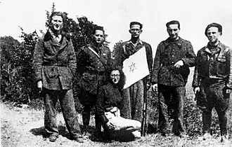 - ↑ Le drapeau et la Bible, maintenant exposés à Yad Vashem étaient ceux de Josué Lifshitz (dit Henri Robert Champagnac dans la Résistance). La Bible lui avait été offerte dédicacée par Herbert Samuel en Palestine comme prix pour son Baccalauréat en 1920.