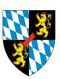 fuselé en bande d'azur et d'argent (Wittelsbach), sur-le-tout au lion d'or, armé, lampassé et couronné de gueules. | |