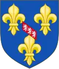 D'azur semé de fleurs de lys d'or au lambel à cinq pendants de gueules[5]. |