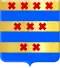 Gironné d'azur et d'or de douze pièces ; sur le tout, de gueules à la fasce ondée abaissée d'argent surmontée d'un sanglier passant de sable. |