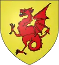 Armes : D'argent à un dragon de sable armé et lampassé de gueules[18]. Cimier : un dragon issant de sable, lampassé de gueules. Supports : deux dragons issant de sable, lampassés de gueules. Devise : MARTEIZE | |