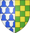 Armes : D'or au griffon de sinople armé, becqué et membré d'argent[20]. Cimier : un griffon issant de sinople, becqué d'or. Supports : deux griffons de sinople, becqués d'or. Devise : A TOVTES BESTES CLOC Variantes : Griffon passant. Griffon couard. ![]()