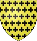 Armes : De pourpre semé de croisettes d'or, au léopard d'argent armé et lampassé de gueules brochant sur le tout[5]. Cimier : une tête de léopard d'argent, lampassée de gueules. Supports : deux léopards d'argent, armés et lampassés de gueules. Devise : DE GALLES DE GALLES Variantes : De pourpre semé de billettes d'or. Léopard non lampassé. ![]()