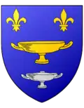 D'azur, à la coupe d'or accompagnée en chef de deux fleurs de lis du même et en pointe d'une coupe couverte d'argent |