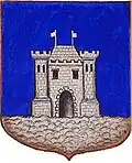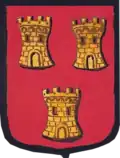De gueules au lion d'or, surmonté de trois tours d'argent. |