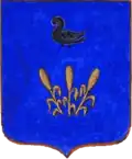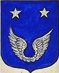 D'azur à un vol d'argent, surmonté de deux étoiles d'or. |