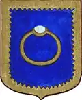 D'azur à l'anneau d'or chatonné d'argent, à la bordure dentelée de même. |