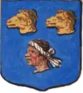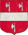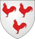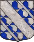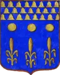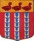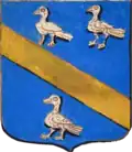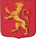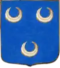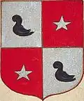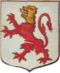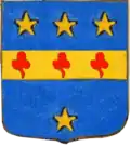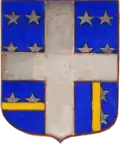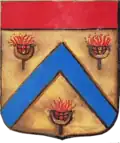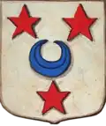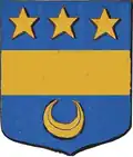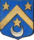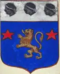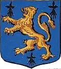 D'azur au lion d'argent ; au chef d'or, chargé de trois étoiles de gueules.[16],[17] |