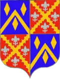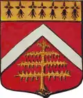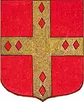 D'or à la croix treflée de sinople ; écartelé d'or au lion de gueules, sur le tout de gueules à deux pals d'or, chargés d'une fasce d'azur, fur chargée de trois losanges d'argent.