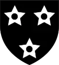 D'or au chevron de sable, accompagné en chef de trois étoiles rangées d'azur, et en pointe d'un croissant de gueules.[19] |