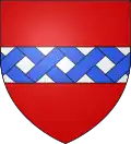D'argent à trois bandes d'azur ; au chef de gueules chargé d'un lion léopardé d'argent.[40] Alias le champ à trois roues d'azur.[39]