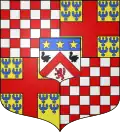 Échiqueté d'argent et d'azur ; au lion de gueules armé, lampassé et couronné d'or, brochant sur le tout.[18]