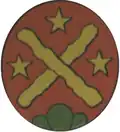 de gueules à une gerbe d'or flanquée de deux étoiles du même.[réf. nécessaire] |