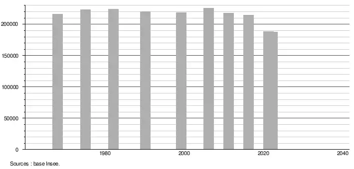 - ↑ Population selon le sexe et l'âge quinquennal de 1968 à 2013 - Recensements harmonisés - Séries départementales et communales