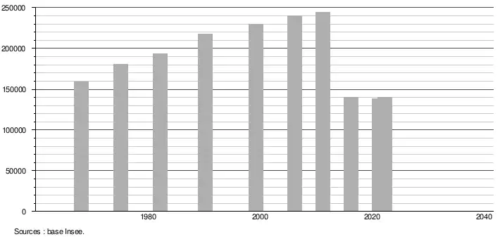 - ↑ Population selon le sexe et l'âge quinquennal de 1968 à 2013 - Recensements harmonisés - Séries départementales et communales