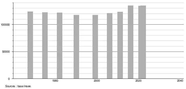 - ↑ Population selon le sexe et l'âge quinquennal de 1968 à 2013 - Recensements harmonisés - Séries départementales et communales
