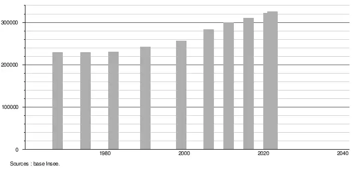 ↑ Population municipale de référence en vigueur au 1er janvier 2025, millésimée 2022, définie dans les limites territoriales en vigueur au 1er janvier 2024, date de référence statistique : 1er janvier 2022.