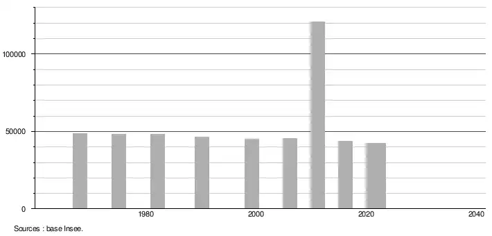 - ↑ Population selon le sexe et l'âge quinquennal de 1968 à 2013 - Recensements harmonisés - Séries départementales et communales