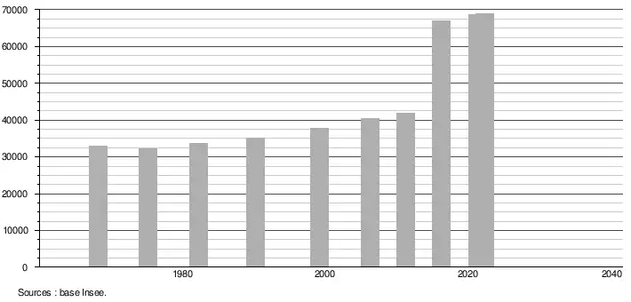 (Sources : Base Insee, population sans doubles comptes à partir de 1962[2] puis population municipale à partir de 2006[3].)