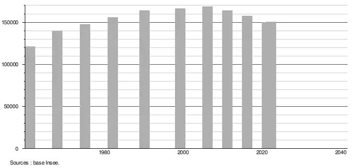 (Sources : Base Insee, population sans doubles comptes à partir de 1962[2] puis population municipale à partir de 2006[3].)