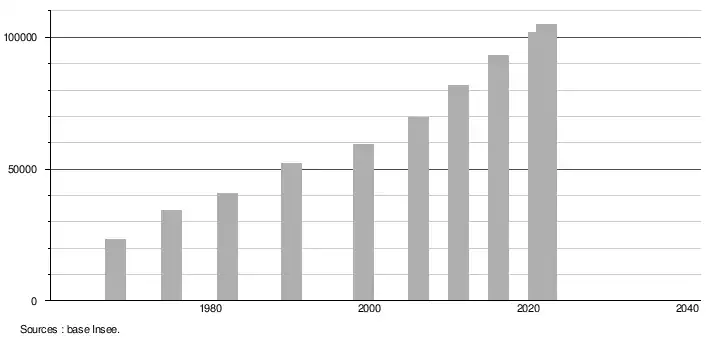 - ↑ Population municipale de référence en vigueur au 1er janvier 2025, millésimée 2022, définie dans les limites territoriales en vigueur au 1er janvier 2024, date de référence statistique : 1er janvier 2022.