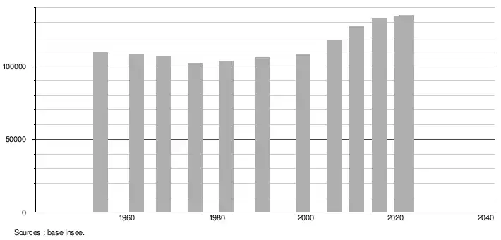 - ↑ Population municipale de référence en vigueur au 1er janvier 2025, millésimée 2022, définie dans les limites territoriales en vigueur au 1er janvier 2024, date de référence statistique : 1er janvier 2022.