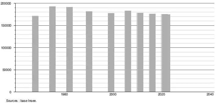 (Sources : Base Insee, population sans doubles comptes à partir de 1962[40] puis population municipale à partir de 2006[41].)
