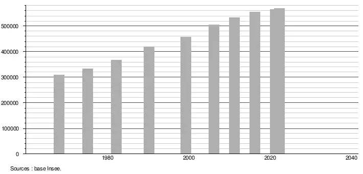 (Sources : Base Insee, population sans doubles comptes à partir de 1962[3] puis population municipale à partir de 2006[4].)