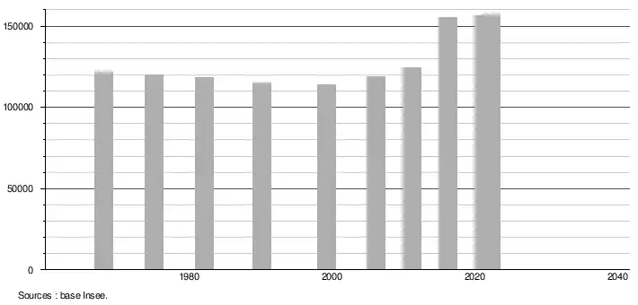 (Sources : Base Insee, population sans doubles comptes à partir de 1962[3] puis population municipale à partir de 2006[4].)