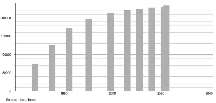 - ↑ Population selon le sexe et l'âge quinquennal de 1968 à 2013 - Recensements harmonisés - Séries départementales et communales